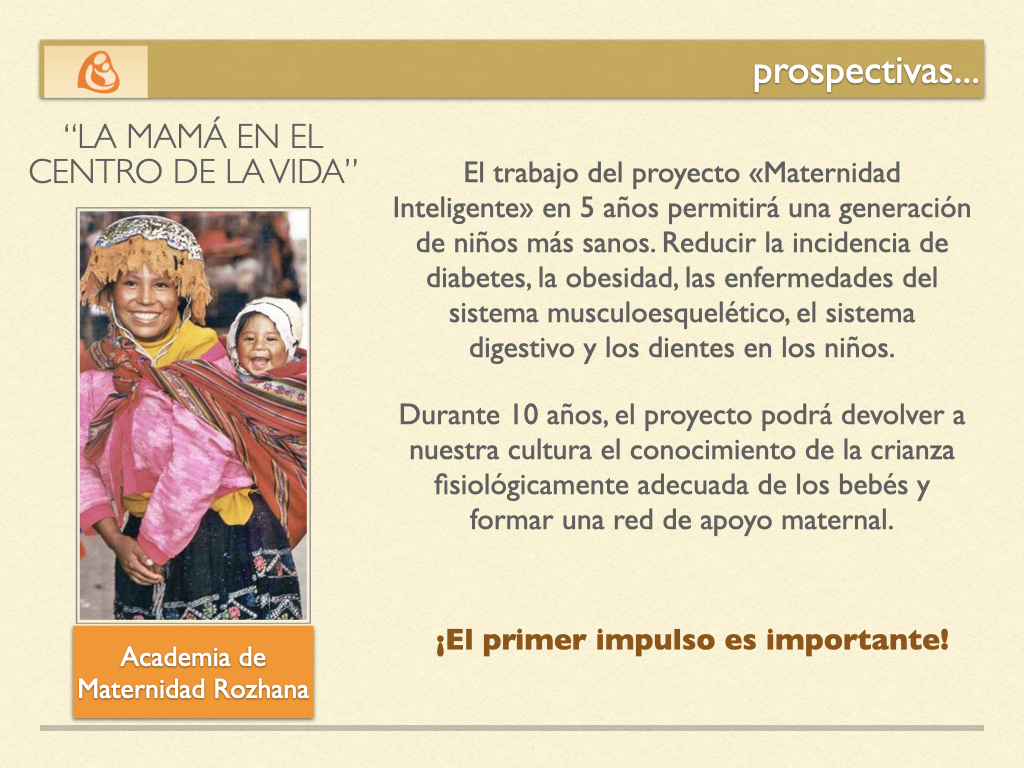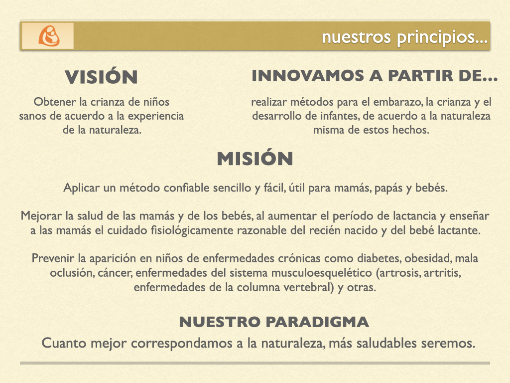 La visión del proyecto es lograr una crianza de niños sanos siguiendo las leyes naturales. Su misión es ofrecer un método confiable, sencillo y efectivo para mejorar la salud de madres y bebés, prevenir enfermedades crónicas como diabetes, obesidad, problemas musculoesqueléticos y cáncer, y fomentar una lactancia materna prolongada junto con un cuidado fisiológicamente adecuado del recién nacido y del bebé lactante.