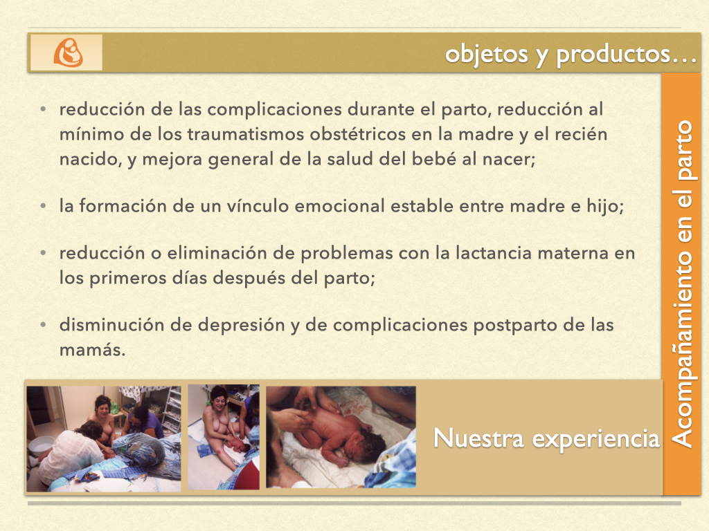 El proyecto cubre diversas áreas clave. En la etapa de embarazo y preparación para el parto se ofrece educación prenatal, talleres y conferencias sobre embarazo saludable, apoyo psicológico y evaluación genética para prevenir riesgos. Durante el parto, se brinda asistencia profesional tanto en casa como en clínica, promoviendo el parto natural y reduciendo al mínimo las intervenciones innecesarias, además del inicio inmediato de la lactancia materna tras el nacimiento.